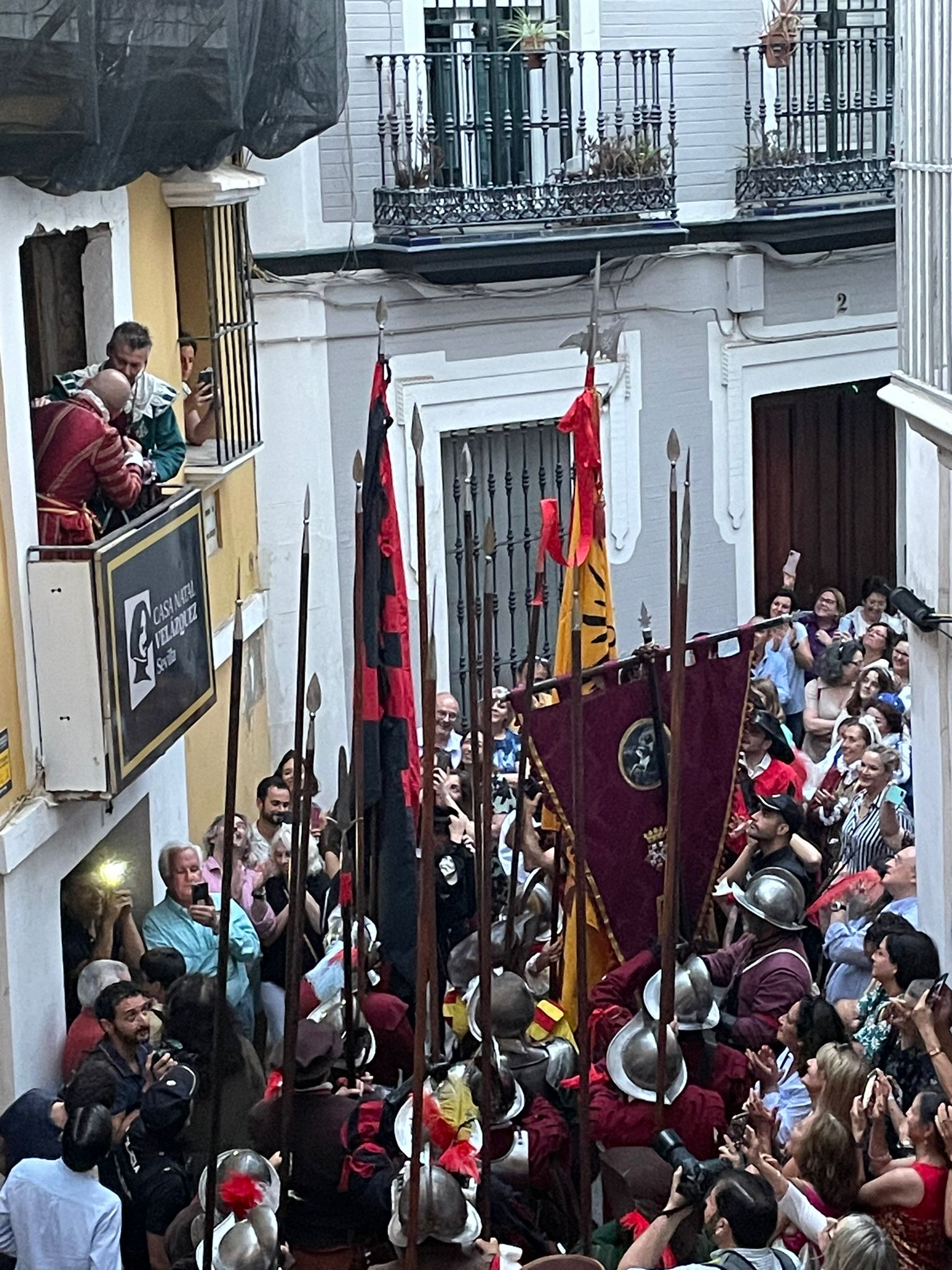 Un singular desfile histórico que ha tenido una gran acogida de público en el que el Tercio de olivares ha recorrido los principales enclaves sevillanos relacionados con la vida del ilustre pintor, con la particularidad de que este año ha partido desde la Casa de Pilatos, donde ha tenido lugar la brillante interpretación de temas barrocos por parte de la soprano Sara López de Haro, acompañada de la guitarrista Paula Brieba.